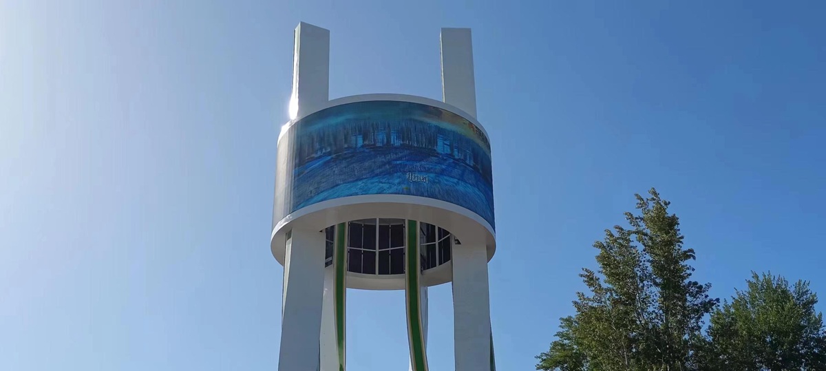 高科光电 P3 户外 LED 显示屏,亮度高、防护性强、耐候耐用,专为户外广告传媒场景打造。项目位于新疆哈巴河县入口,采用圆柱形创意造型,施工面积 86㎡,360° 全景展示、画面均匀流畅,视觉覆盖广,传播效果突出。
