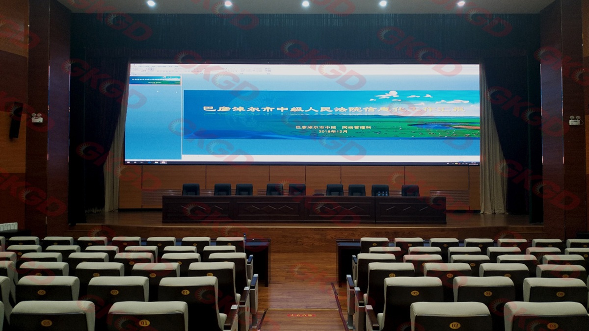 本项目应用于巴彦淖尔临河区中级人民法院,施工面积55㎡,整屏无缝拼接、安全耐用,可完美适配庭审直播、案件公示、会议调度、信息发布等多元场景。产品维护便捷、性能过硬,为法院提供专业、高效的可视化显示保障,助力司法工作信息化与规范化开展。