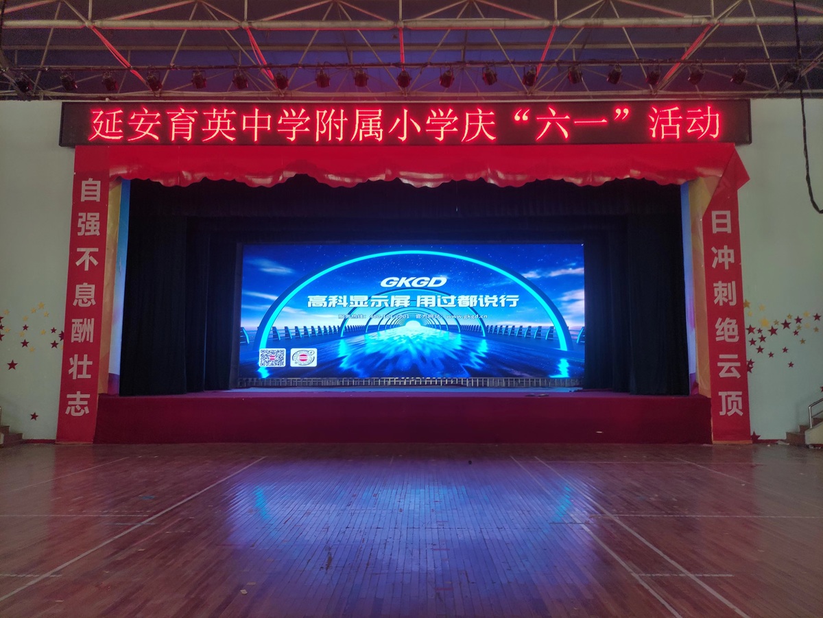 本项目应用于延安育英中学附属小学舞台,施工面积65㎡,整屏无缝拼接、运行稳定可靠。可完美满足文艺演出、活动庆典、教学展示、校园宣传等多元需求。产品操作简便、安全耐用,有效提升舞台视觉效果与活动氛围,为学生搭建高品质展示平台,助力校园文化建设与素质教育开展。