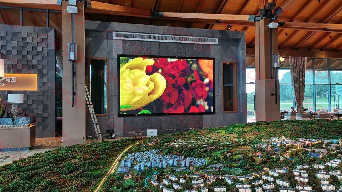 屏体操作简便,亮度舒适且节能环保,整体效果精致大气,有效提升房产中心形象与展示体验,为房产销售、客户接待及活动宣传提供清晰、稳定、专业的视觉保障。