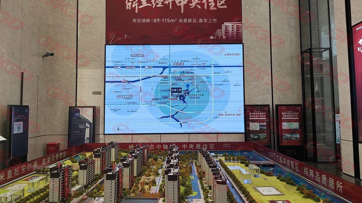 设备操作简便,亮度适中且节能环保,整体效果高端大气,有效提升售楼处品质与客户观感,为房产销售、客户接待及活动推广提供清晰、稳定、专业的视觉保障。