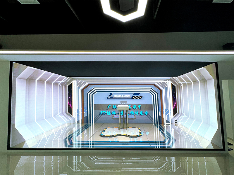 41.55㎡的面积,在这个展厅里够大气。屏幕铺满整面主墙,从左边到右边,从上到下,整整齐齐。参观者从入口进来,穿过产品展示区,最后停在这块大屏前。数字教育公司的展示内容以软件平台和教学场景为主,光靠展板和终端设备,很难呈现完整的教学体验。这块屏要做的,就是把数字课堂的效果,变成看得见的画面。