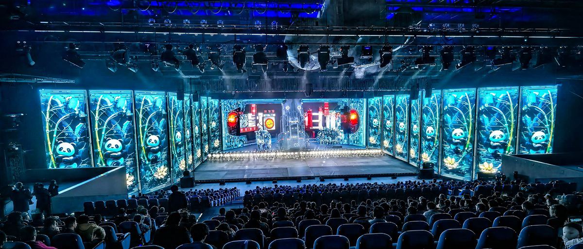 1869中国大熊猫生态世界,是国内第一个大熊猫主题乐园。它的核心剧目《熊猫归来》,是一部以大熊猫起源和保护为线索的沉浸式演出。剧场的视觉核心,是一块超过2000㎡的LED大屏,用的是强力巨彩室内Q3 Pro系列。