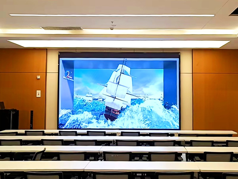 P1.8属于小间距里比较高配置的,像素密度大,显示文字和图表格外锐利。哪怕是一张A0尺寸的学术海报缩小投上去,每一行小字都清清楚楚。学校设备处的人说,这块屏装完之后,评审会上的提问次数明显少了——因为大家都看清了。