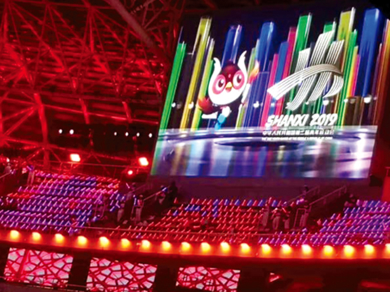 青运会期间,场馆外立面上那块208㎡的LED大屏,来自强力巨彩户外Q8 Pro系列。