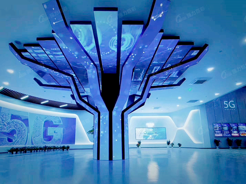 200㎡的面积,在这个展厅里够大气。屏幕铺满整面主墙,从左边到右边,从上到下,整整齐齐。参观者从入口进来,穿过序厅,转过一个弯,迎面就是这块巨幕。5G创新园的展示内容抽象——网络切片、边缘计算、毫米波、大规模天线阵列,这些概念光靠讲解员说,讲半天对方还是一头雾水。这块屏要做的,就是把看不见的5G技术,变成看得见的场景。