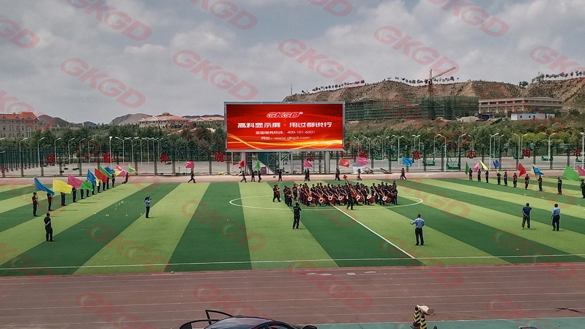 高科光电 P8 户外 LED 显示屏,亮度高、防水防尘、耐候耐用,专为户外操场场景打造。项目位于兰州某警察学院,施工面积 240㎡,画面清晰、视野开阔、可视距离远,全面满足训练指挥、集会宣讲、新闻播放及文化宣传等多元化需求。