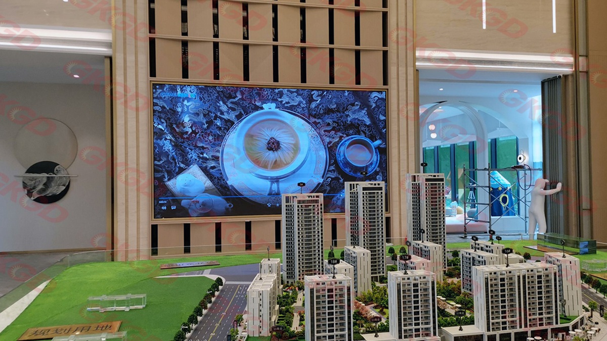 设备操作简便,亮度适中且节能环保,整体效果高端大气,有效提升售楼部形象与客户体验,为房产销售、客户接待及活动宣传提供清晰、稳定、专业的视觉保障。