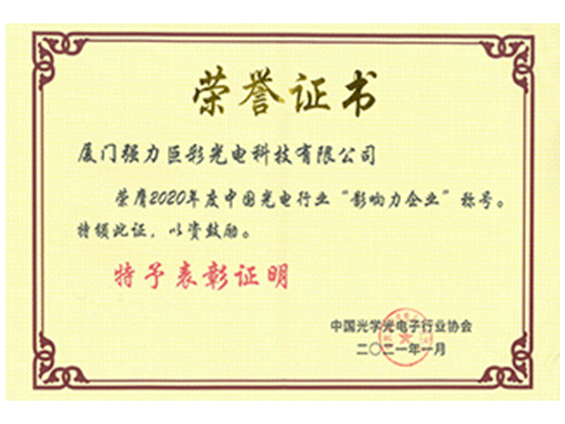 “2020年度中国光电行业‘影响力企业’”评选,由中国光学光电子行业协会主办,是光电领域颇具分量的专业评选。