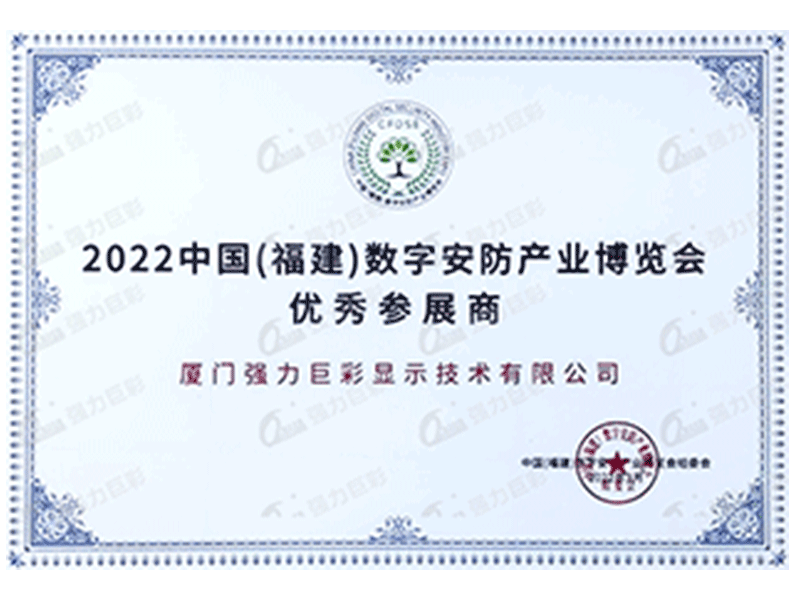 “2022中国(福建)数字安防产业博览会优秀参展商”由福建省公安厅指导、省安防协会主办,全国20余省安防协会共同参与,是区域内安防行业的专业认证。