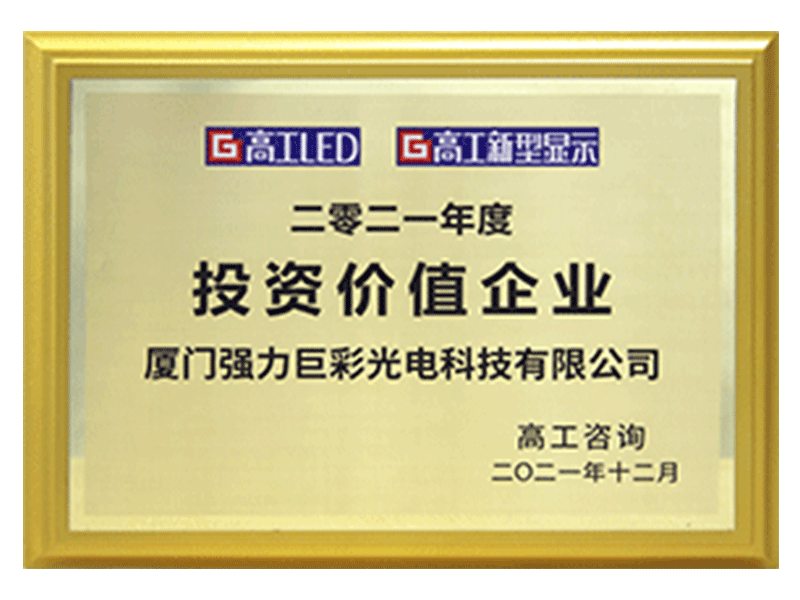 “2021年度投资价值企业”金球奖由高工LED主办,是LED显示行业内颇具分量的专业奖项。