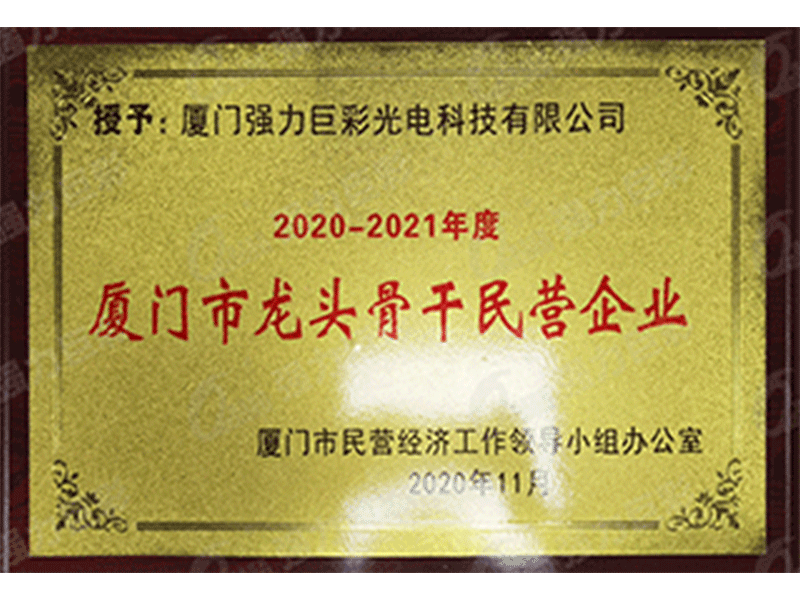 “厦门市龙头骨干民营企业”由市民营经济工作领导小组办公室牵头,市发改委、财政局、科技局等十余个部门联合评审,每两年认定一次,有效期两年,是市政府重点培育的民营企业名单。2020-2021年度全市最终认定90家,覆盖平板显示、软件信息、新材料等十三大重点产业。