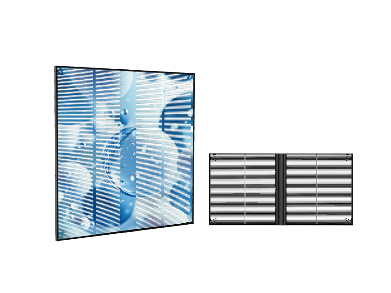 在保留室内采光与通风的同时,实现悬浮式炫酷显示,画面通透灵动、科技感十足,是商场、展厅、售楼部等室内高端展示的理想选择。